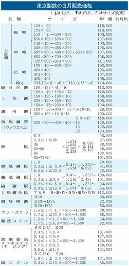 東京製鉄の3月鋼材販価/3カ月連続で全面据え置き/建材中心に需要低迷、市況上伸力欠く
