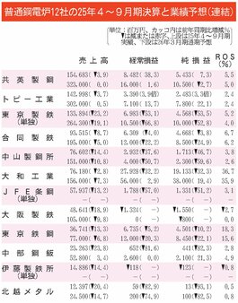 普通鋼電炉メーカー12社の2025年4~9月期決算が7日までに出そろった。建設需要の深刻な低迷で販売量が大幅に減少し全社が減収。収益面では販価と原料の鉄スクラップ価格がともに...