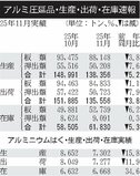 世界の1~9月非鉄地金需給/アルミ82万2000トンの供給不足/銅も73万6000トン不足