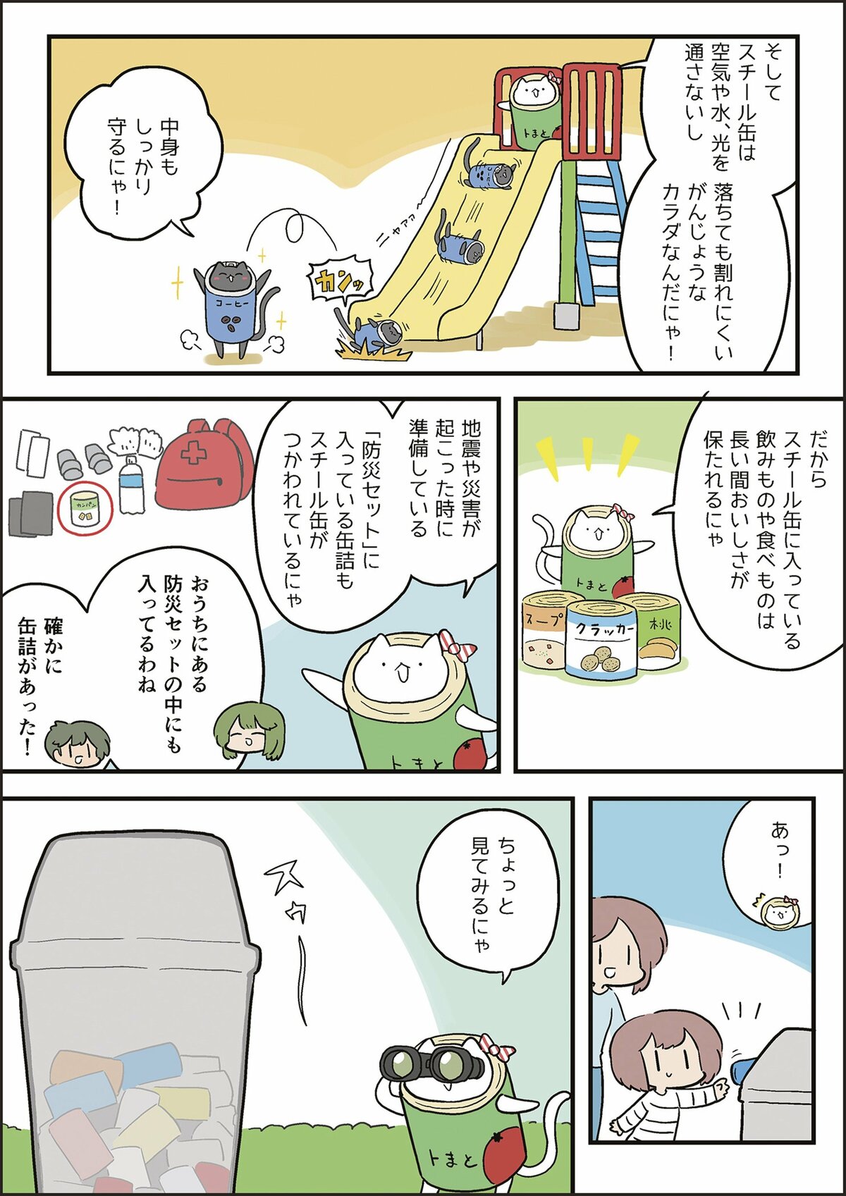 猫をモチーフにした公式キャラクター(トマト缶=姉の「リサにゃん」、コーヒー缶=弟の「コテツ」)が登場し、軽快なやり取りでスチール缶の特徴や機能性などを訴求する内容で構成。ホームページに専用のサイトを立ち上げ、9月に第1話を公開。今年度中に第4話まで公開する予定となっている。