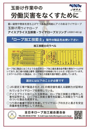 「かつて加工技術が未熟な者が玉掛ワイヤロープを作成し、それが原因で痛ましい労働災害が発生した。これをきっかけに『二度とこういった事故が起きないように』との強い思いで、全国のワイヤロープの加工に関わる企業が集まった」