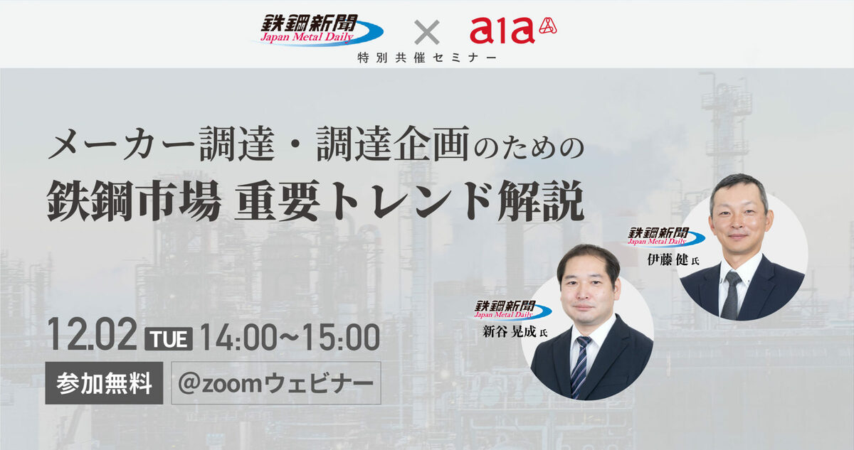 本セミナーでは、鉄鋼新聞社から、薄板・表面処理鋼板、棒鋼・形鋼・鋼管に至る「鉄鋼材料の最前線」をこれまでの市場動向を振り返りながら、今後の市場を読み解くために重要なトピックについて解説いたします。