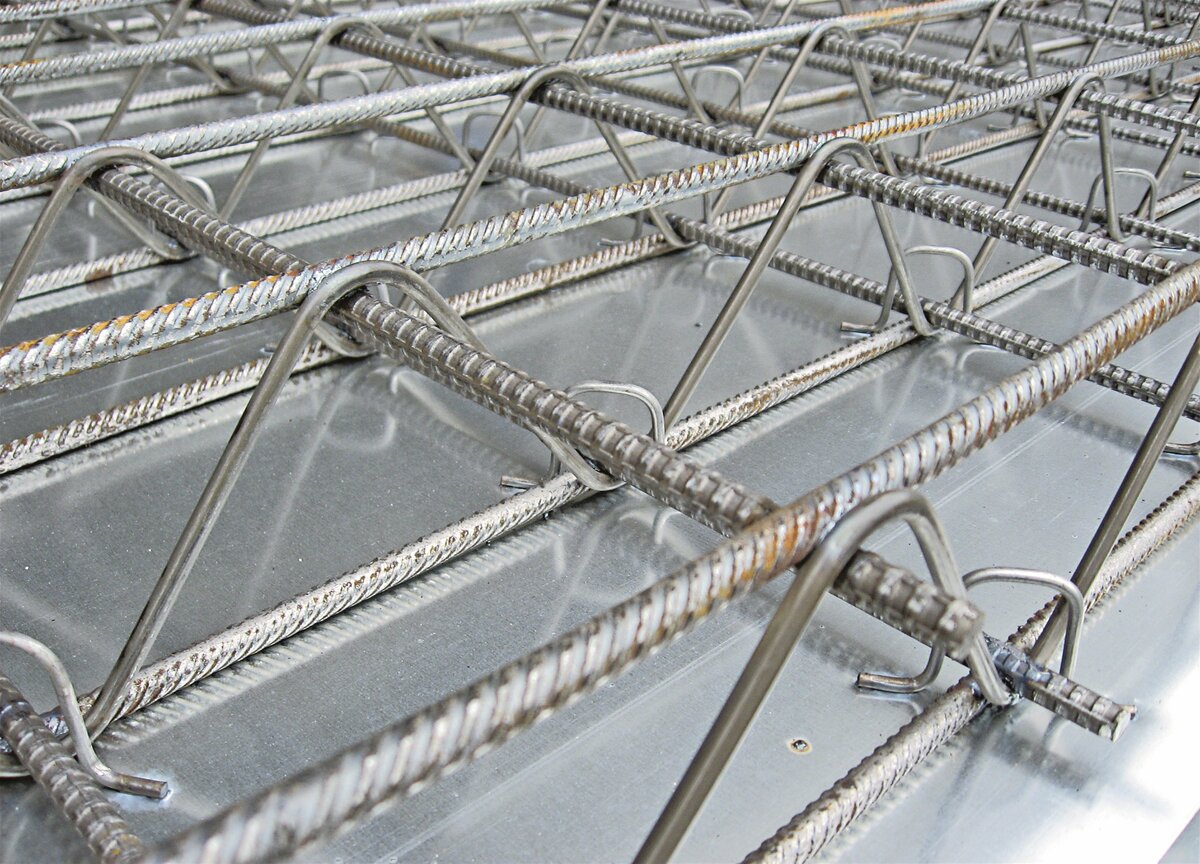 現場の省力効果について、担当者は「ファブデッキは、現場で全ての配筋が必要な一般デッキに比べて工程が半分に短縮でき、縦筋のみを備えた鉄筋付きデッキの競合製品と比べて15%の短縮が可能」と優位性を強調する。