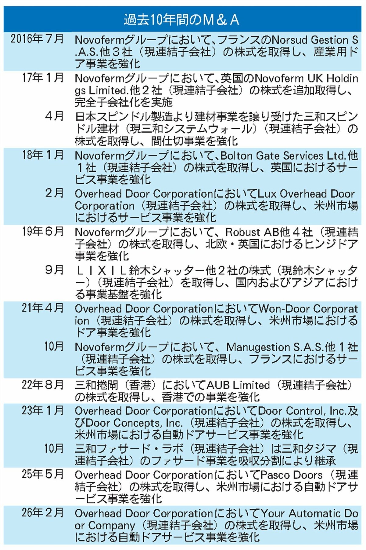 三和ホールディングスはきょう10日、創立70周年を迎えた。60周年からの10年を振り返ると、コロナ禍や地政学リスク、サプライチェーンの混乱など激動の時代だったが、同社の業績は好調に推移し、〝高機能開口部のグローバルリーダー〟への歩みを着実なものとしている。高山靖司社長に話を聞いた。(伊藤 健)