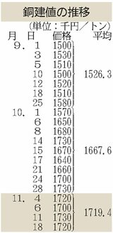 建値/JX金属、銅1万円下げ/三菱マテ、鉛3000円上げ