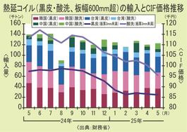 熱延コイル輸入/5月、12%減の12万3000トン際/酸洗、3年8カ月ぶり安値
