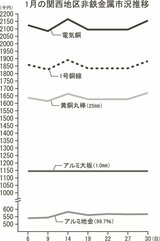非鉄月間市況/1月/関西地区/銅建値急騰、製品も高値推移/アルミ地金も高値圏