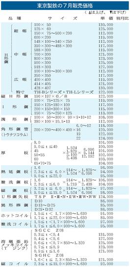 東京製鉄の7月鋼材販価/2カ月連続全製品据え置き