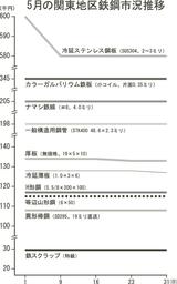 鉄鋼月間市況/関東地区/5月/薄板類、月末に1000円続落/溶接鋼管類は横すべり商状