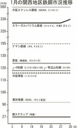 鉄鋼月間市況/関西地区/1月/軽量C形鋼・コラム、安値寄り/カラー鋼板は月末に上伸