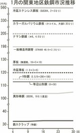 鉄鋼月間市況/関東地区/1月/鉄スクラップ、中旬に500円上伸/薄板類は底固めムード強まる