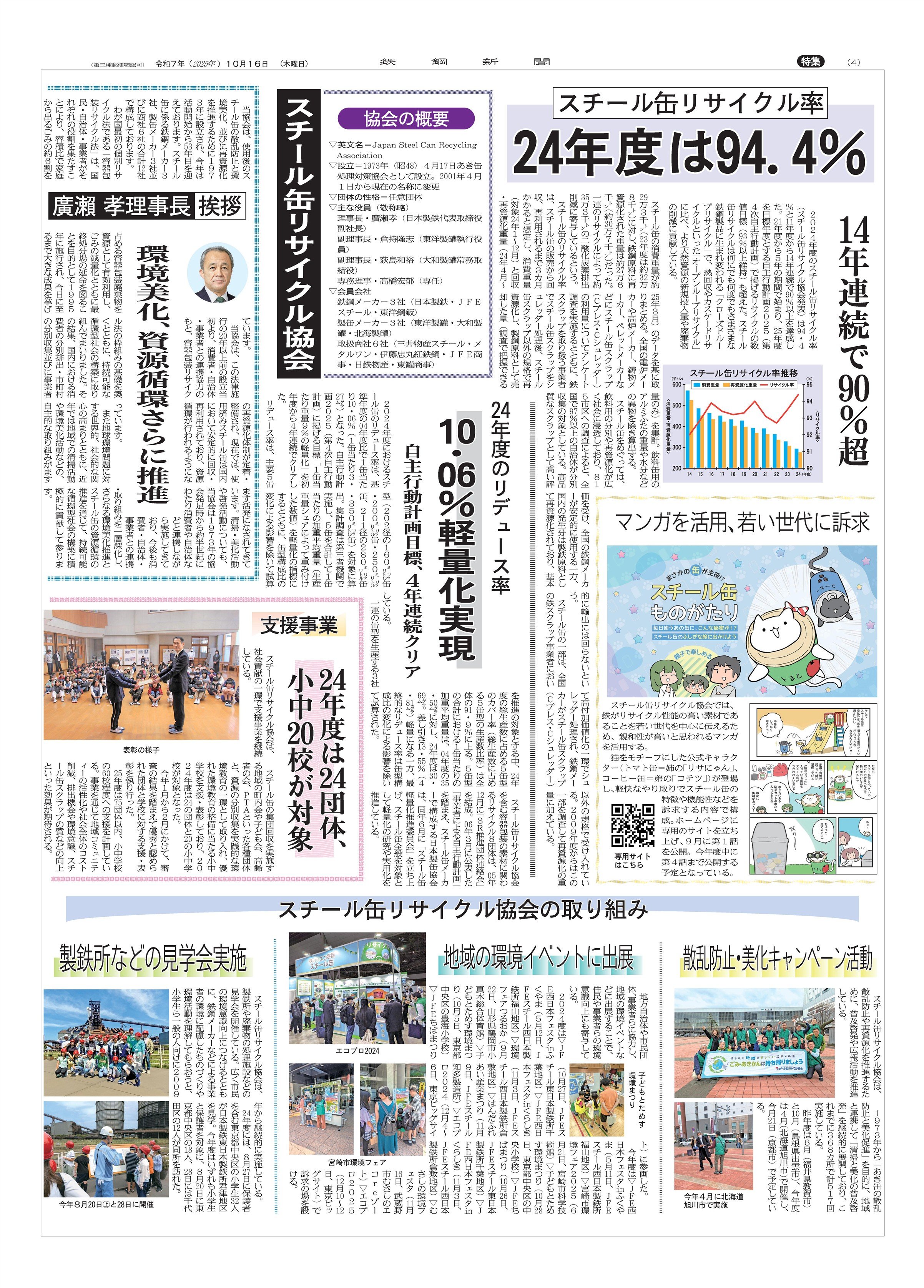 スチール缶のリサイクル推進、およびそのための指導・普及啓発の実施など、「スチール缶リサイクル協会」の活動状況を特集。