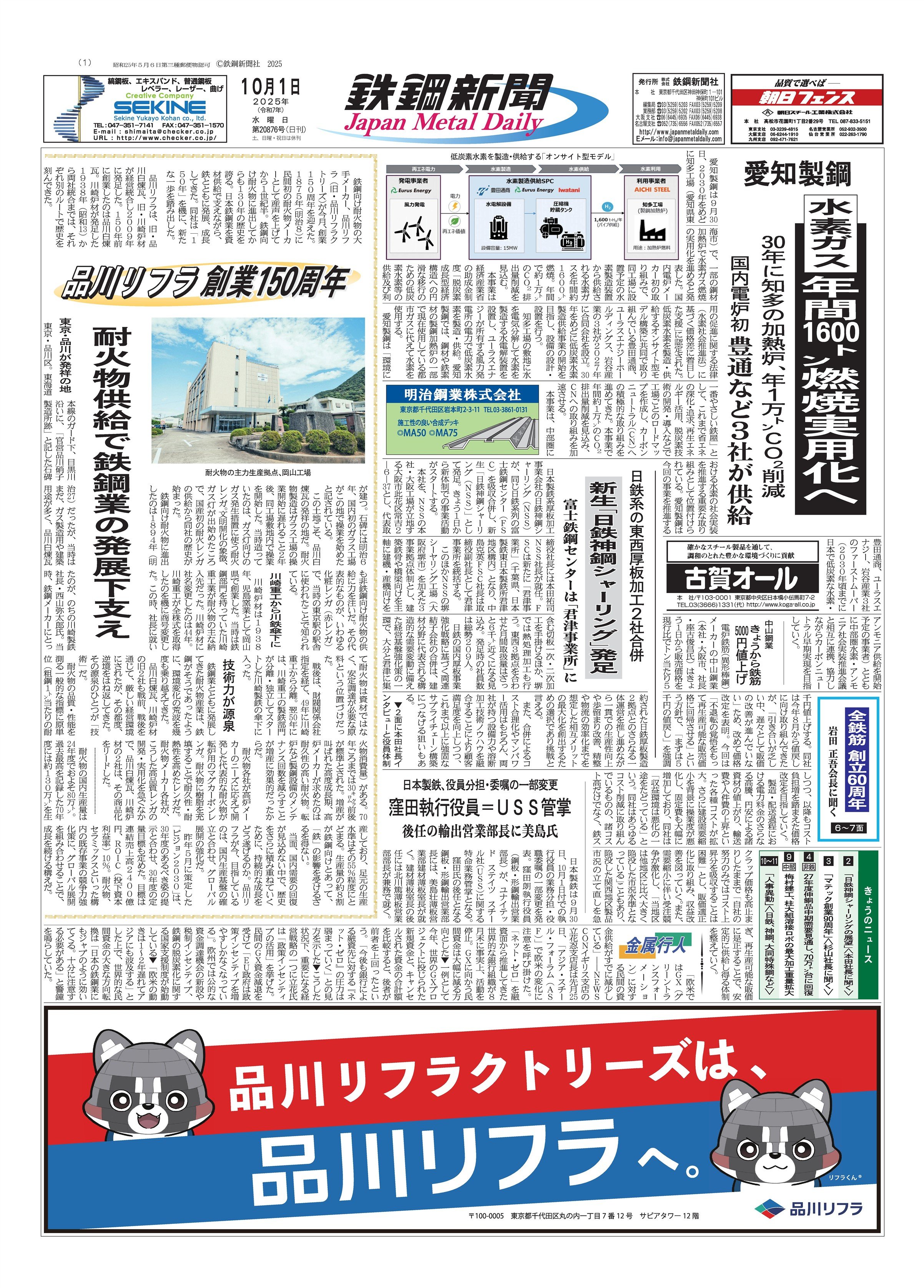 鉄鋼向け耐火物の大手メーカー、品川リフラ(旧・品川リフラクトリーズ)が今月、創業150周年を迎えた。 「150年」を機に、今後の展望を紹介する。