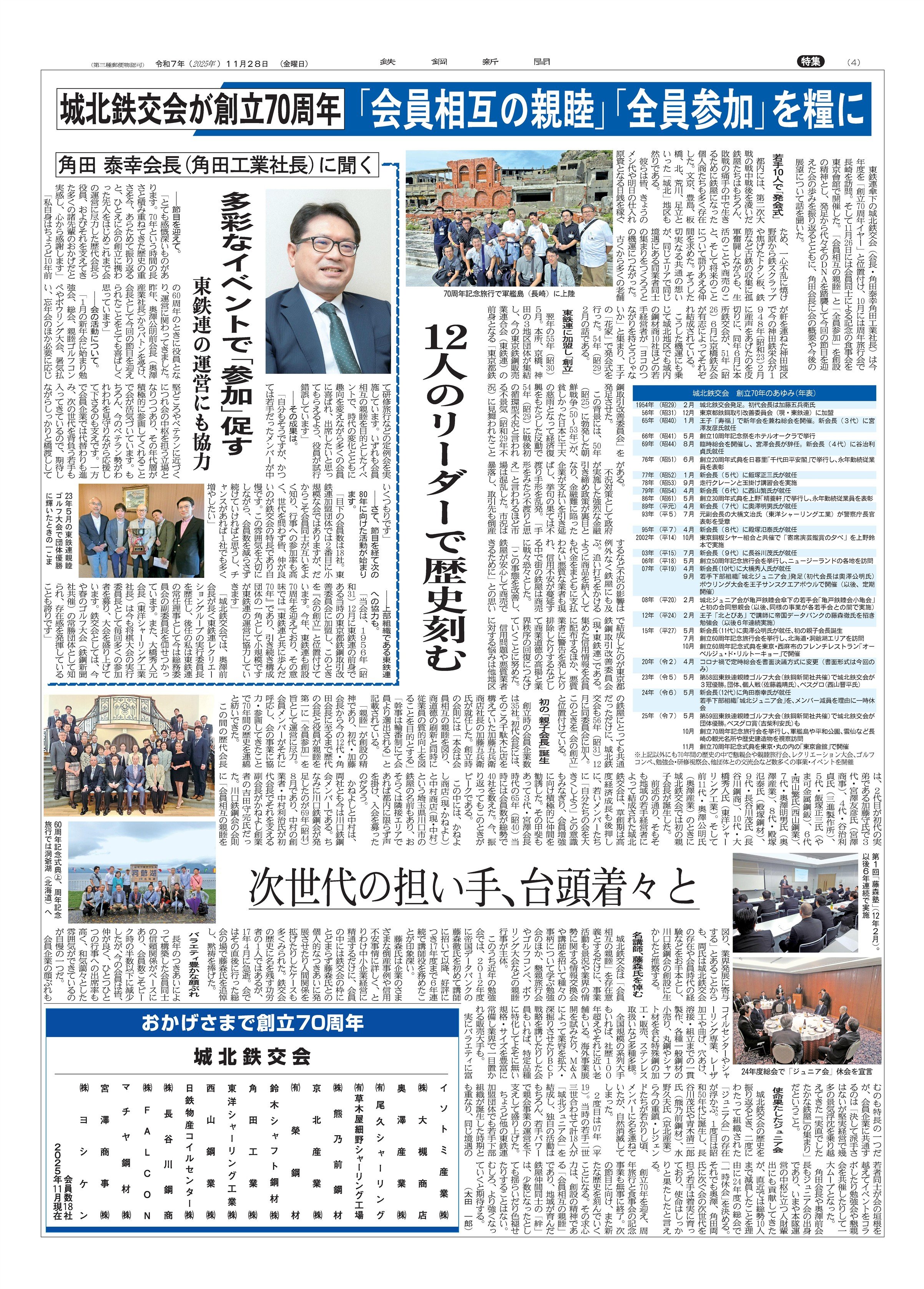 城北鉄交会が創立70周年/角田泰幸会長(角田工業社長)に聞く/多彩なイベントで「参加」促す/東鉄連の運営にも協力