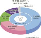 鉄鋼生産シェア/2022年度・本紙調査/ばね鋼/15/首位の日鉄、44%に低下/大同特殊鋼は10%台回復