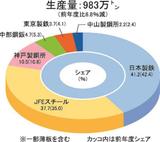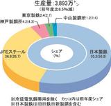 毎年度、鉄鋼主要製品18品種のメーカー別生産シェアを本紙が独自に調査