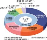 鉄鋼生産シェア/2019年度/本紙調査/12軸受鋼/首位山特、34%台に低下/日鉄グループで48%超