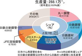 毎年度、鉄鋼主要製品18品種のメーカー別生産シェアを本紙が独自に調査
