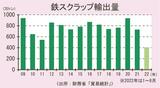 2022年度下期・注目の数字(5)/鉄スクラップ輸出量・600万トン/主力の韓国、ベトナム向けが低迷/ロシア製ビレットなど影響、11年ぶり低水準 2022/10/13 05:00 鉄鋼 2022年度下期・注目の数字