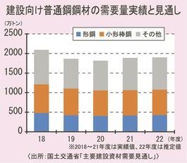 2022年度下期・注目の数字(11)/22年度建設向け普通鋼鋼材需要見通し・1900万トン/建築・土木用ともプラスを予想/鉄骨「前年度並み470万トン前後」 2022/10/31 05:00 鉄鋼 2022年度下期・注目の数字
