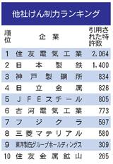 特許の「他社けん制力ランキング」/1位住友電工、2位日本製鉄/パテント・リザルト調べ