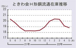 5月末のときわ会H形鋼在庫/1.7%減、18万8300トン/「サイズによって歯抜けも」/3カ月連続減