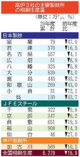 高炉3社/20年度の製鉄所別粗鋼生産/コロナ打撃、全拠点減少/足元は回復