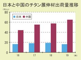 チタン展伸材/中国勢が台頭/出荷量、日本の4倍に/日本メーカーは汎用品市場で劣勢、高加工性薄板で優位性維持