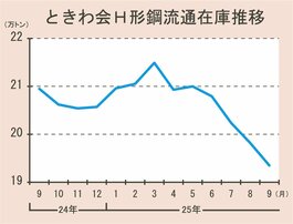 9月末ときわ会H形鋼在庫/2.4%減の19万3500トン/2カ月連続20万トン割れ「適正水準維持」