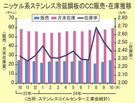 ステンレスコイルセンター10月統計/加工2.5%減も販売前年並み