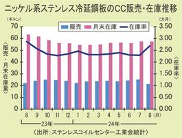 ステンレスコイルセンター8月統計/加工量5%減、販売は2%減
