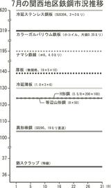 鉄鋼月間市況/関西地区/7月/条鋼建材、もち合い商状/鉄スクラップは値下がり基調