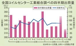コイルセンター出荷、低水準続く/1~3月、前年並みの320万トン前後/需要水準低下、回復力弱い