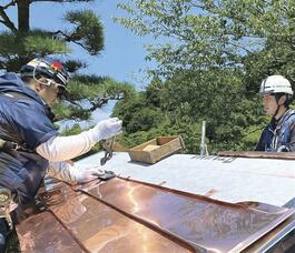 茨城県板青年部がボランティア活動/水戸・偕楽園、看板棟の屋根葺き替え/匠の技生かし、地域貢献に一役