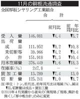 厚板シヤ工組の11月鋼板流通調査/出荷量、3カ月ぶり前月比減