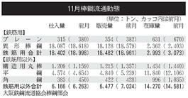 OSA棒鋼部会の11月流通動態/全品種で販売量減