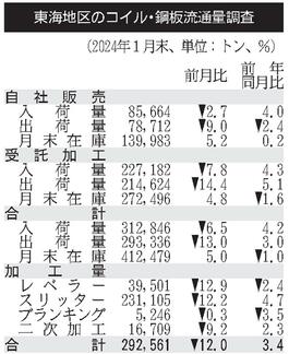 1月のコイル鋼板流通/前月比で入出荷減/自動車生産減が影響/東海コイル/センター工業会