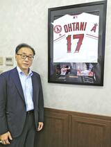 本社玄関に有名選手グッズ飾る