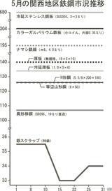 鉄鋼月間市況/関西地区/5月/鉄スクラップ、下旬に反発/等辺山形鋼は横ばい、荷動き鈍化
