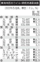 東海コイルセンター工業会/5月の鋼板流通調査/稼働日少なく、入出荷大幅減/スリッターの加工量減少目立つ