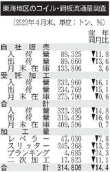 4月のコイル・鋼板流通調査/稼働日少なく入出荷とも減/東海コイルセンター工業会