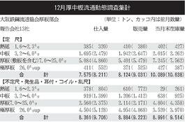 大阪鉄流協/12月の厚中板流通動態/月末在庫5%減/仕入れ・販売とも2カ月連続減