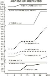 鉄鋼月間市況/関西地区/4月/冷薄、上旬と下旬に上伸/鉄スクラップ、中旬に上伸