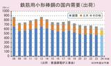 鉄筋小棒内需、24年度は635万トン/2年連続減、91年以降で過去最低更新/建設業の24年問題など影響建築・土木向けとも減/普電工予測