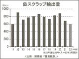22年度の鉄スクラップ輸出/2年連続700万トン割れに/11年ぶり低水準、越など東南アジア向け減