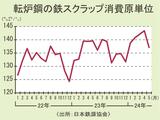 5月の転炉スクラップ消費原単位/4カ月ぶり130キログラム台に低下/消費量は5カ月連続70万トン台維持