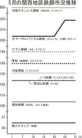 鉄鋼月間市況/関西地区/5月/等山形大型サイズ1万円高/異形棒鋼は月初から横ばい