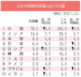 世界粗鋼、2月は2%減/6カ月連続減少