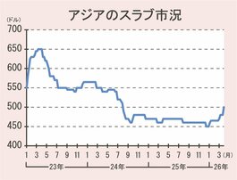 アジアのスラブ市況/500ドル台に上昇、2年ぶり高値/イランが輸出停止、中国材で代替の動きも
