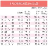 6月の世界粗鋼/3カ月連続減、1億5140万トン